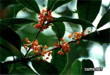 丹桂葉較小,花香味較淡,花色橙黃或橙紅。