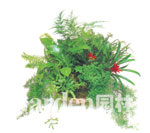 吊籃組合盆栽能給有限的空間增添活力和色彩,通過(guò)對(duì)植物精心的選擇搭配以及在位置上合理的垂掛,就能達(dá)到所想要的視覺(jué)裝飾效果。竹編吊籃內(nèi)配植各類(lèi)蕨類(lèi)植物,注重突出了種植像是的飄逸感和葉形變化上的對(duì)比和差異。