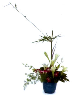 花材:翠竹、百合、石斛蘭、八角金盤、書帶、天門冬草。