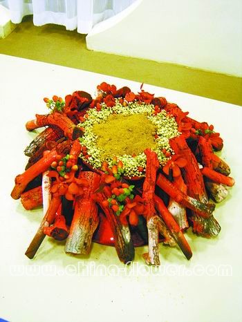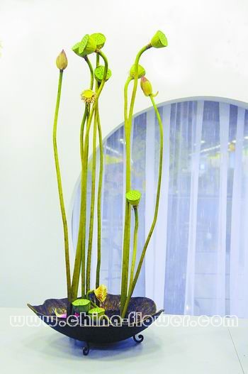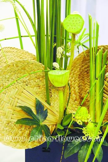 《夏日蒲葉香》用編好的蒲葉扇和鮮蒲來表現夏日里蒲的多種特質,淡淡的蒲香中,翠綠的鮮蒲給人以涼爽之意,老蒲扇的功用使人倍感清涼。