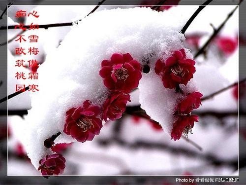 聞道梅花圻曉風, 雪堆遍滿四山中。