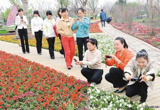 蘇州首座花卉植物園在蘇州市相城區生態農業示范園區落成。這座占地3000畝的花卉植物園是華東地區規模最大的“百花園”,共由18個花卉專類區域組成,引種了130多個種類、500多個品種的世界各地名貴花木,使得名城蘇州又添一座“后花園”。圖為身置“百花園”的游人們正在盡情領略“俏花吐芬芳”的美麗春色。