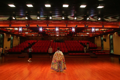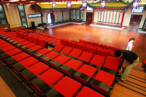 6月20日,一位演員在國家京劇院實驗劇場·暢和園內排練。 為迎接2008年北京奧運會,國家京劇院精心打造了一座極富中國古典園林式風格、匯集尖端先進技術的精品戲院——國家京劇院實驗劇場·暢和園。該劇場總面積475平方米,觀眾席位216座,將于6月28日開業。 新華社發