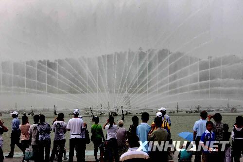 8月17日,人們在奧林匹克森林公園欣賞音樂噴泉表演。當日,4萬觀眾來到北京奧林匹克公園游覽。占地1000多公頃的北京奧林匹克公園包括奧林匹克森林公園、景觀大道、國家體育館、國家體育場、國家游泳中心和運動員村等設施。 新華社記者 張燕輝攝