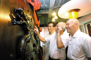 悠悠古琴,清茶飄香。1500平方米的鑒賞大廳四處放著古木制品,讓參觀者大飽眼福。記者在該協(xié)會(huì)進(jìn)門處看到,一扇名為“泰山北斗”的古木屏風(fēng),以古木的歷史久遠(yuǎn)和制作手法的精細(xì)引起業(yè)內(nèi)人士關(guān)注。屏風(fēng)的正面雕有一只欲騰空飛翔的“三爪龍”,背面刻有“日出東方”的泰山圖,整個(gè)屏風(fēng)長(zhǎng)8米,高3米。