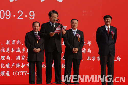 2月9日下午,中國非物質文化遺產傳統技藝大展開幕式在全國農業展覽館舉行。圖為文化部部長蔡武在開幕式上致詞。中國文明網 王嘯 攝