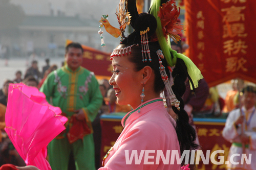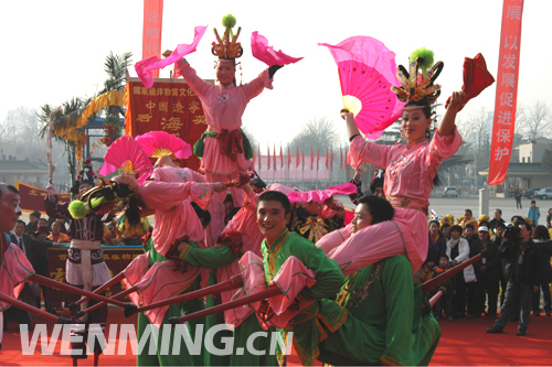 2月9日下午,中國非物質(zhì)文化遺產(chǎn)傳統(tǒng)技藝大展開幕式在全國農(nóng)業(yè)展覽館舉行。圖為開幕式上的國家級非物質(zhì)文化遺產(chǎn)中國遼寧海城高蹺秧歌表演。 中國文明網(wǎng) 王嘯 攝