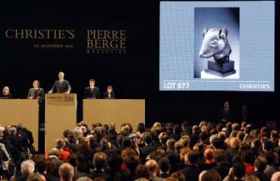 這次為期三天的法國時裝設(shè)計師伊夫·圣洛朗與其同伴皮埃爾·貝爾熱“珍藏專場”拍賣會,共有拍品七百余件,在一八六0年戰(zhàn)爭期間被英法聯(lián)軍劫掠走并流失海外多年的中國圓明園流失文物鼠首和兔首銅像屬于高價拍品之一。