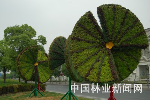 一直以來,上海綠化部門為迎接世博會加大了對主要道路沿線和中心綠地的綠化造景力度。日前,一座座名為“中國扇”的綠色景觀(見圖)在延安西路虹許路口的綠地亮相。這道造型別具匠心的景觀以其鮮明的中國元素為上海街頭營造出濃郁的藝術氛圍,成為一道亮麗景觀。