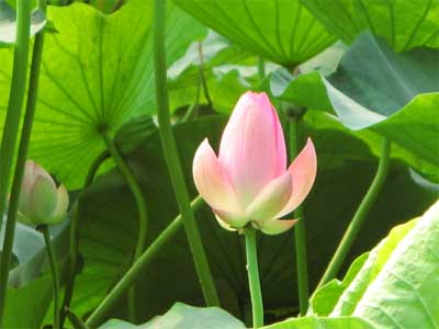 在植物園內(nèi)賞荷花與其他公園不一樣,植物園的荷花都是盆栽。今年北京植物園的荷花展從6月份開(kāi)始將一直持續(xù)到9月,共展出荷花品種120余個(gè),3000多盆。游客可以近距離地與荷花留影嬉戲,做一回“荷花仙子”。