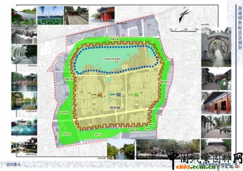 整體保護規劃確定了明府城、大明湖、環城公園 “一城、一湖、一環” 的保護整治改造重點, 打造特色鮮明、功能完善、環境優美的泉城特色標志區,再現 “幽幽古巷繞古城,處處清泉伴人家”的城市意象。
