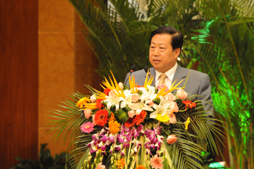環境保護部部長周生賢在演講。(新華社記者歐東衢 攝)