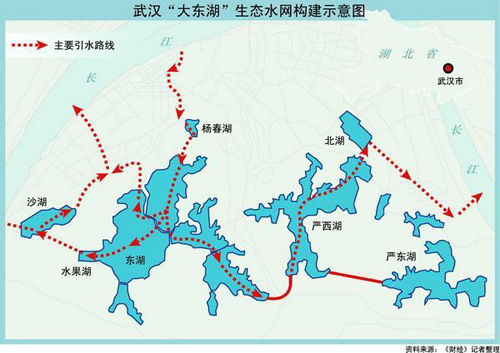 湖北省政府發展研究中心課題組在2005年10月公布的《關于武昌“大東湖”水網生態構建工程的設想》中稱,武昌地區的東湖、沙湖、北湖、楊春湖、嚴西湖和嚴東湖這六大湖泊可相互連通,并引入長江水,總投資預計為29.77億元。