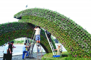 長安街立體花壇擺放 突出“普天同慶”
