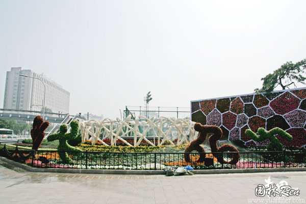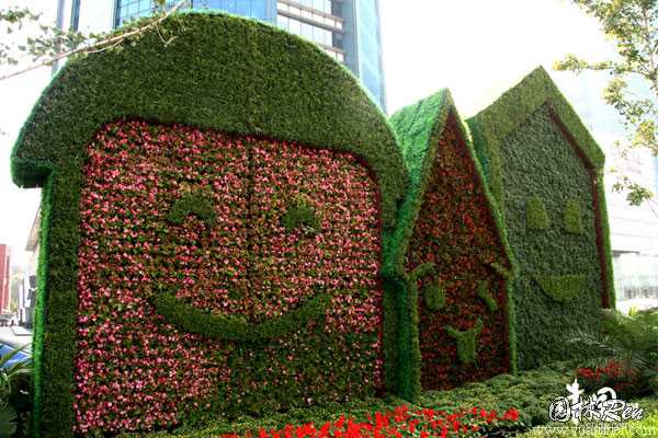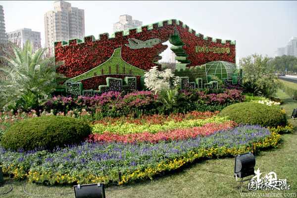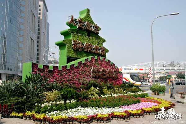 擺放在西單的“信息時代”花壇展現(xiàn)了近些年網(wǎng)絡(luò)化和數(shù)字化技術(shù)的發(fā)展, “巨龍騰飛”花壇描繪了祖國60年輝煌的成就;“神舟飛天”花壇再現(xiàn)了我國航空航天領(lǐng)域?qū)崿F(xiàn)的重大突破。國貿(mào)中心的“大地歡歌”花壇描繪了社會主義新農(nóng)村建設(shè)生機(jī)盎然的面貌。東單路口的“奧運(yùn)之光”花壇則用無數(shù)花朵搭起了“鳥巢”和“水立方”,再現(xiàn)了北京奧運(yùn)會的輝煌。