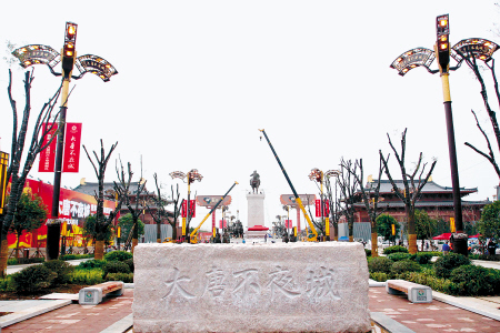西安曲江新區(qū)建設(shè)的大唐不夜城,將被打造為重現(xiàn)大唐盛世風采的文化商業(yè)步行街區(qū)。貞觀文化廣場是該項目的核心部分,由西安大劇院、西安音樂廳、曲江美術(shù)館和曲江太平洋影城四組文化藝術(shù)性建筑組成。該廣場采取立體式設(shè)計,以地面層的四個下沉式廣場把地面和地下的活動場所有機聯(lián)系起來。貞觀文化廣場在總體設(shè)計中,四個主體建筑以正對大雁塔的南北軸線為空間對稱關(guān)系,主體空間高度接近的電影院與美術(shù)展館布置在用地的北部,兩者的大屋頂均設(shè)計為重檐歇山;而音樂廳和大劇院布置在用地的南部,兩者的大屋頂均設(shè)計為重檐廡殿。目前,電影院、美術(shù)館和音樂廳的硬件設(shè)施已經(jīng)到位并通過了驗收。據(jù)了解,早在2005年曲江新區(qū)就開始籌劃論證大唐不夜城項目。2006年,大唐不夜城項目被確立為省市兩級重點建設(shè)項目, 2007年7月8日,陜西省委常委、西安市委書記孫清云、西安市市長陳寶根等領(lǐng)導(dǎo)為大唐不夜城貞觀文化廣場等三大項目奠基;12月31日,西安音樂廳、曲江太平洋影城、曲江美術(shù)館等三大文化場館順利實現(xiàn)主體封頂。2008年12月初,世界500強企業(yè)、國際投資大鱷美國華平投資集團成功進駐大唐不夜城,建設(shè)西安新樂匯;2009年初,西安新樂匯成功招商,4月,大唐不夜城點亮工程啟動,5月,景觀大道開始改造建設(shè)……