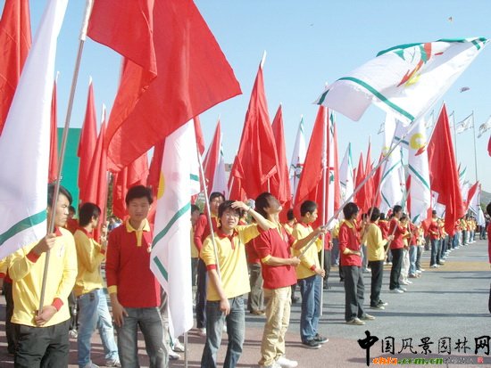 園博會(huì)開(kāi)幕 百余名志愿者搖旗助威(組圖)