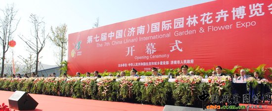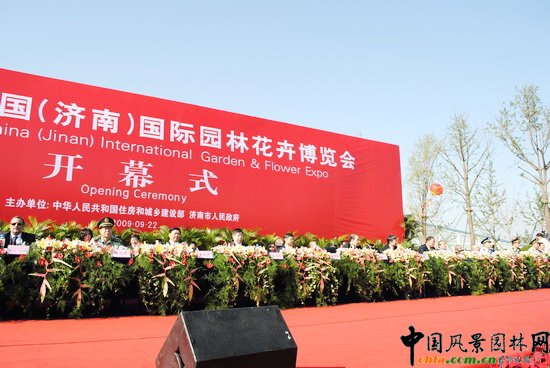 中國(guó)風(fēng)景園林網(wǎng) 期盼已久的第七屆中國(guó)(濟(jì)南)國(guó)際園林花卉博覽會(huì)終于拉開(kāi)帷幕,9月22日上午,在熱烈祥和的氣氛下,濟(jì)南園博園泉韻廣場(chǎng)舉行了盛大的園博會(huì)開(kāi)幕儀式。