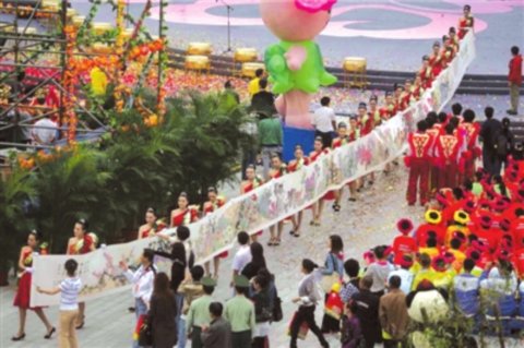 昨天上午10點,花博會開幕式在綿綿細雨中開始。開幕式上,32米長的國畫長卷《綠港花開》贏得了現場一片驚嘆。這是第一次將全國31個省、自治區、直轄市以及港澳臺和深圳市的省花、市花繪于一幅長卷中,寓意著我國地廣物美、民族團結、鮮花盛開、欣欣向榮。