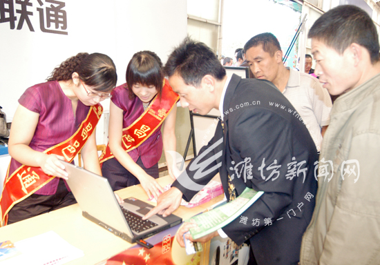 一位參加綠博會的苗木客商正在使用中國聯通WCDMA無線上網查詢資料。9月21日,2009中國北方綠化博覽會、第十四屆中國園林花木信息交流會在山東昌邑綠博會舉行,昌邑聯通員工來到會場為廣大客商提供包括3G業務在內的綜合信息服務,受到歡迎。