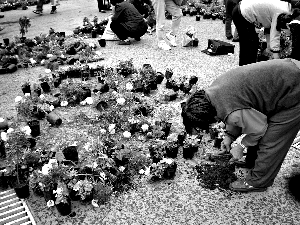 11日下午4時,記者看到,公園東門前擺放的小盆花已凌亂不堪,50多名市民在花壇中來回穿梭,挑選鮮艷完好的花。在現場,約有10多輛帶有籃子的自行車停放在花壇四周,籃子、后座上都裝滿了鮮花。還有市民空手拿不了,便到路邊攔來出租車,打的搬走鮮花。