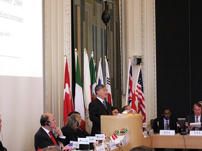 10月24日至25日,為發揮立法者在應對氣候變化問題上的獨特作用,促其履行使命、推動COP15取得成功,“全球國際”組織(GLOBE International) 在哥本哈根召開氣候變化立法者論壇,來自美國、英國、法國等19個國家的議員出席,丹首相拉斯穆森、氣候能源大臣赫澤高等出席開幕式并發表講話。會上,各國立法者代表就COP15取得成功的關鍵及相關立法原則等問題達成共識并形成成果文件提交COP15。