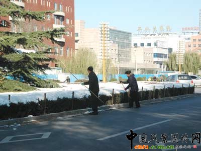 據了解,區園林綠化局組織山區各施工隊,在抓緊完成造林工程收尾工作的同時,及時組織人員開展澆灌凍水工作,對新植苗利用防風防凍設施進行過冬御寒保護,大苗做好支撐,防止風倒。由于今年初冬全區普降大雪,造成樹木積雪及殘斷枝,全局出動120余人、8輛車次,重點對新平南路、新平北路、新平西路等城區主要道路清理樹木積雪約3000余株,并剪除樹木折枝1500余處。