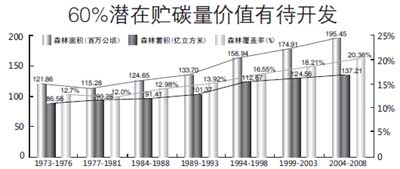 國家林業局造林綠化管理司副司長、國家林業局應對氣候變化辦公室常務副主任李怒云在國家林業局11月6日召開的例行新聞發布會上說, 我國發展林業生物質能源潛力巨大,在應對氣候變化當中能夠作出巨大的貢獻,我國現有森林植被的貯碳量只相當于潛在貯碳量價值的40%多。林業是促進國家經濟可持續發展、維護國家生態安全,保障人類福祉真正的低碳的選擇。
