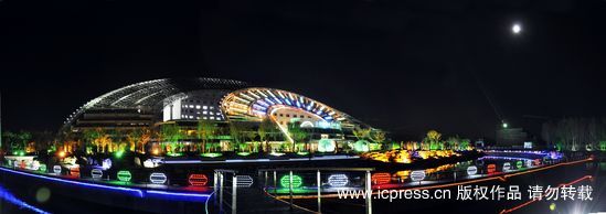 夜幕下的“日月壇-微排大廈”。