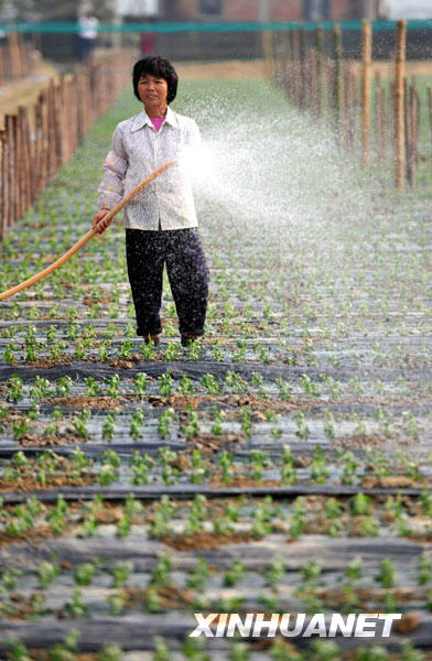 11月30日,一位花農正在給菊花苗澆水。新華社記者 郭程 攝