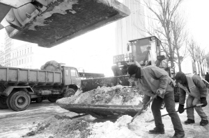 哈市各清冰雪責(zé)任單位在較短的時間內(nèi)組織人力14000余人,清冰雪機械200余臺進行清理,截至早7時30分,在交警部門的大力配合下,全市主干街路全部打通,保證了通勤高峰時段交通順暢。由于雪停后氣溫偏高,拋撒融雪劑的路段出現(xiàn)黑雪泥的現(xiàn)象。對此,哈市清冰雪辦要求各區(qū)連續(xù)反復(fù)清理,做到邊清邊運。