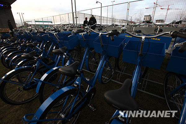 12月8日,在丹麥?zhǔn)锥几绫竟,?lián)合國氣候變化大會舉辦地貝拉中心外為與會人員準(zhǔn)備的免費(fèi)自行車排列整齊。主辦方宣稱要將氣候變化大會辦成綠色大會,而會議舉辦地貝拉中心也處處體現(xiàn)著節(jié)省能源、綠色環(huán)保和親近自然的特色。