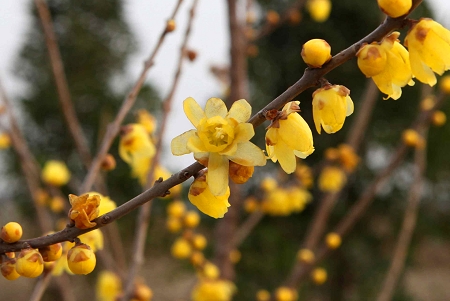 據臘梅研究所工作人員介紹,臘梅花期各不相同,除了大部分寒冬開放的普通臘梅品種外,還有來自浙江的三四月開放的野生夏季臘梅,五六月開放的美國臘梅等品種。此外,市民還可自行采摘。