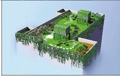 圖:民主路工商銀行屋頂綠化效果圖。