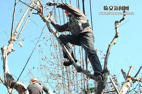 15日下午,浙江臨安市民王女士打進本報熱線63818000電話反映:我看到市人民醫院附近有工人攀爬在樹上修剪樹枝,連保險帶都不系,讓人看著慌兮兮的。你們記者給呼吁呼吁,希望能引起重視。