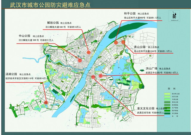 武漢市城市公園防災避難應急點示意圖: