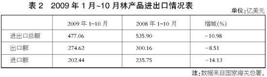 2009年,為有效應對國際金融危機對我國林業產業的影響,國家林業局、國家發展改革委、財政部、商務部、國家稅務總局聯合印發了《林業產業振興規劃(2010~2012年)》,進一步明確了林業產業發展的指導思想、基本原則、目標任務和主要措施。截至2009年11月底,全國規模以上林業工業企業生產情況逐月好轉,林業產業發展基本面保持穩定。