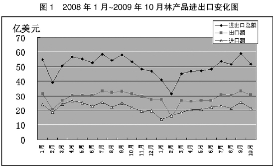 據海關統計,受國際金融危機影響,2009年前10個月主要林產品進出口同比仍然下降。從單月看,自2009年3月以來林產品進出口出現回暖跡象后,5月~10月呈現振蕩回升的態勢,其中,7月、9月兩月出口環比明顯增加,9月當月的出口額實現同比增加。總體來看,我國林產品進出口整體形勢已顯示出總體向好的趨勢。