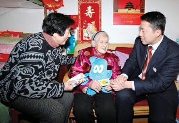 家住浦東嶗山五村的110歲老壽星李素清接過4張上海世博會門票,這是中國電信上海公司為她送上的特殊新年禮物。  戈富強