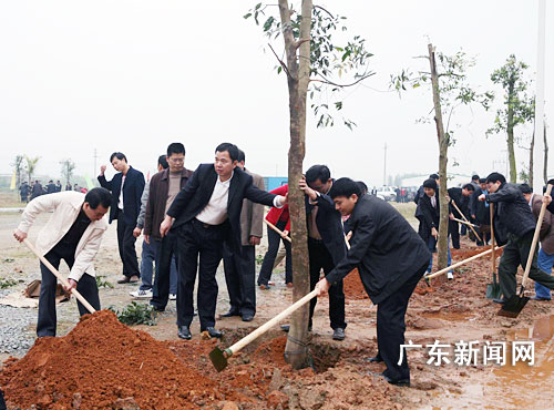 2月22日,新春伊始,廣東惠州市博羅縣四套班子領導成員和300多名干部群眾來到羅陽鎮新村移民村,開展“千村家園綠化”工程植樹活動。