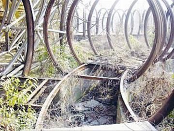 “巨蛋”破敗的“時光隧道”。24日,江蘇鎮(zhèn)江“世紀巨蛋”拆除工程開始封閉施工,有些設施已破敗不堪,與被拆前的金碧輝煌形成巨大反差。