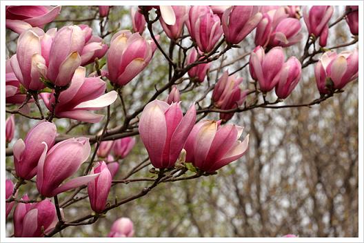 頤和園的風景很出色,但花卻只是零零散散的點綴,只有在樂壽堂前,你才會不由得為那幾株玉蘭駐足。陽光下,玉蘭為古樸的建筑平添了一份淡雅和神秘。除了頤和園,在天安門東側的菖蒲河公園,有兩三株玉蘭也正開得旺呢。