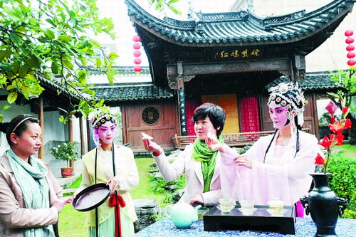 圖片說明:世博期間,由4位村姑組成浙江省唯一的茶藝表演隊,將展示浙江深厚的昆曲茶藝。