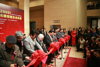 王文章代表文化部對展覽開幕表示熱烈祝賀。他指出,新中國成立60年來,特別是改革開放30年來,我國城市面貌煥然一新,城市建設取得了重大的、令世人矚目的成績,但與此同時,也存在文化缺失的問題。在城市快速發展的今天,城市文化的內容和內涵應該與建設相協調。作為城市文化的一個重要組成部分,城市雕塑不僅應與環境相協調,還要引領文化發展,在提高人的素養、促進人的整體發展、讓人們得到藝術享受等方面發揮作用。我們要站在世界坐標上,繼承和弘揚優秀傳統文化,在新中國成立60年來城市雕塑建設成就的基礎上,不斷開拓創新。