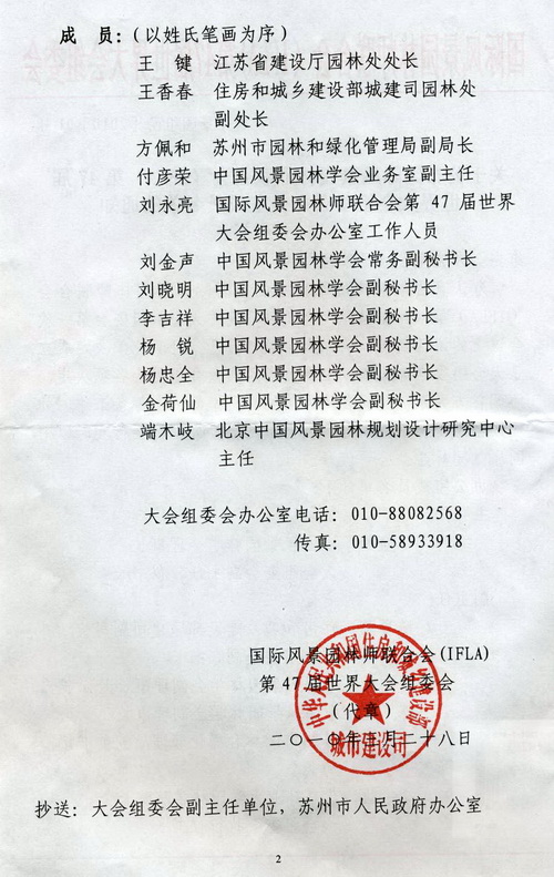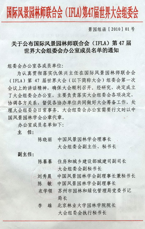 關(guān)于公布國際風景園林師聯(lián)合會(IFLA)第47屆世界大會組委會辦公室成員名單的通知