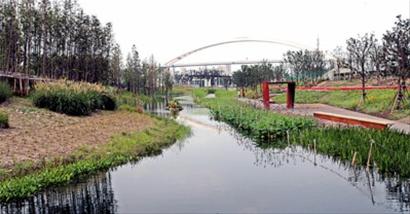 張飲江告訴記者,每天有2400立方米的黃浦江劣五類水被引入后灘公園的濕地水系,在園內流淌1.7公里,在此過程不斷凈化,進入世博公園時就達到三類水。這些三類水進入世博公園水系后,形成了景觀用水,還能滿足世博公園與后灘公園自身的綠化灌溉及道路沖洗等需要。