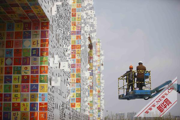 目前,上海世博園各個展館正緊張而有序地進行收尾階段施工。4月20日,2010上海世博會將開始世博園試運行。 新華社記者廖宇杰攝