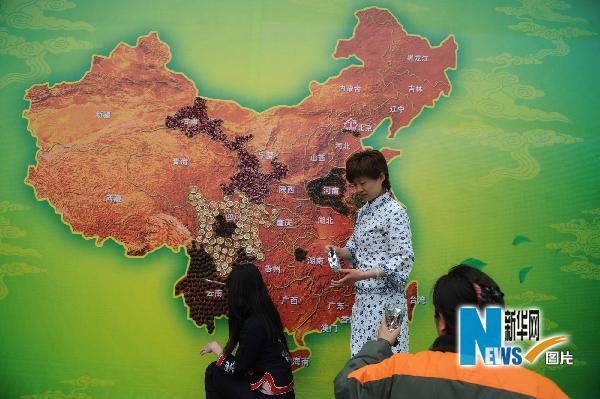 4月19日,北京八大處公園開始制作“茶地圖”,在20平方米的“茶地圖”上,工作人員根據(jù)中國(guó)產(chǎn)茶地區(qū)分布情況貼上其相應(yīng)的茶。“茶地圖”將在4月27日開幕的八大處公園第九屆中國(guó)園林茶文化節(jié)上正式亮相,旨在普及茶文化知識(shí)。新華社記者 李俊東攝
