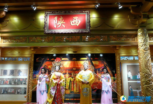 2010年4月29日,上海,仿真機器人版的“唐明皇”、“楊貴妃”在世博會陜西館門前笑迎八方來客。