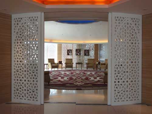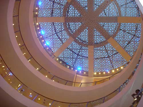 沙特阿拉伯館擁有皇室標(biāo)準(zhǔn)VVIP接待廳,世界最大的全景融入式IMAX展示空間和景色宜人、視野極佳的屋頂阿拉伯花園。由于客流量過大,能飽覽黃浦江、中國國家館以及世博園區(qū)美景的屋頂花園暫不對普通觀眾和VIP客人開放。